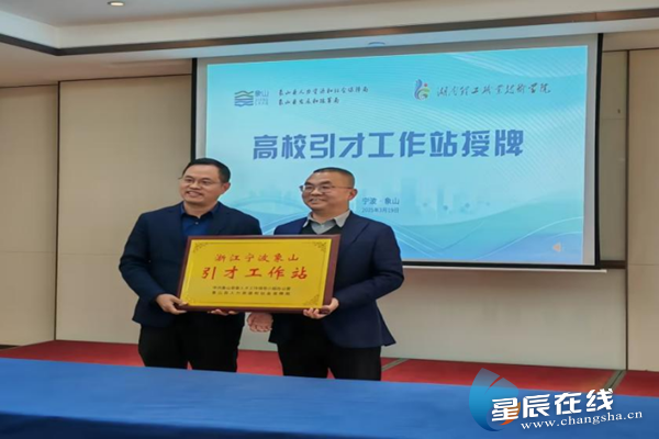 (象山县向学校颁发“高校引才工作站”牌匾。)