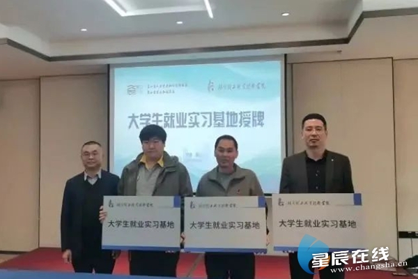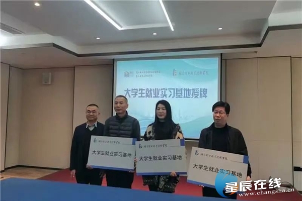(学校向6家企业颁发“大学生就业实习基地”牌匾。)