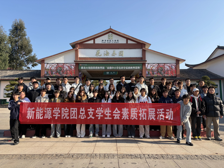 11月22日,阳光明媚,湘潭盘龙大观园的门牌在晨光中熠熠生辉。新能源学院团总支学生会的师生们满怀热忱,在此开启了一场主题为“凝心聚力,逐光同行”的素质拓展之旅。红色横幅上“素质拓展活动”的字样格外醒目,成为当日活动最生动的注脚。