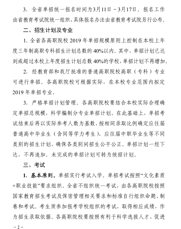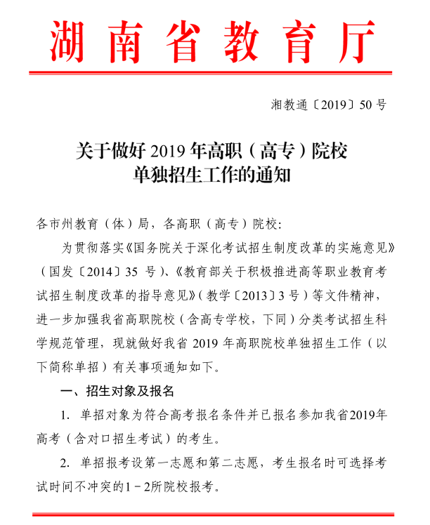 关于做好2019年高职(高专)院校单独招生工作的通知