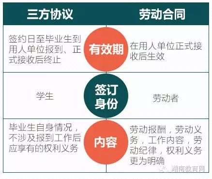 对于毕业生来说,签订了三方协议以后,还需要接受用人单位实习期、试用期的进一步考察。