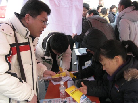 上午9点人才交流会正式开始,大批的求职者涌进会场。会场即刻呈现出拥挤、热闹的场面。在一些知名企业展位前看到,咨询、投放简历的毕业生已经排成一条长龙,虽然天气寒冷,但是仍有许多毕业生在队伍外等候。从展位外的毕业生口中获悉,由于过于拥挤,等了半个多小时简历都很难投放到有意向的单位展位上。同时一些民营企业的展位前也人头攒动,同学们争相咨询,与以往毕业生比较看重收入和工作的稳定性相比,此次人才交流会上许多毕业生更加看重培训机会和发展前景。