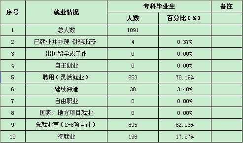 2016年,我院毕业生总数1091人。截止7月31日,已就业人数895人,初次就业率为82.03%。具体情况如下: