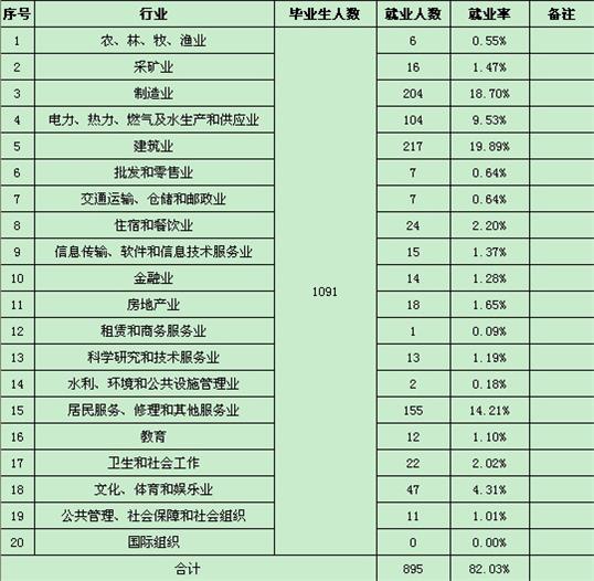 2016届毕业生初次就业率分行业统计表