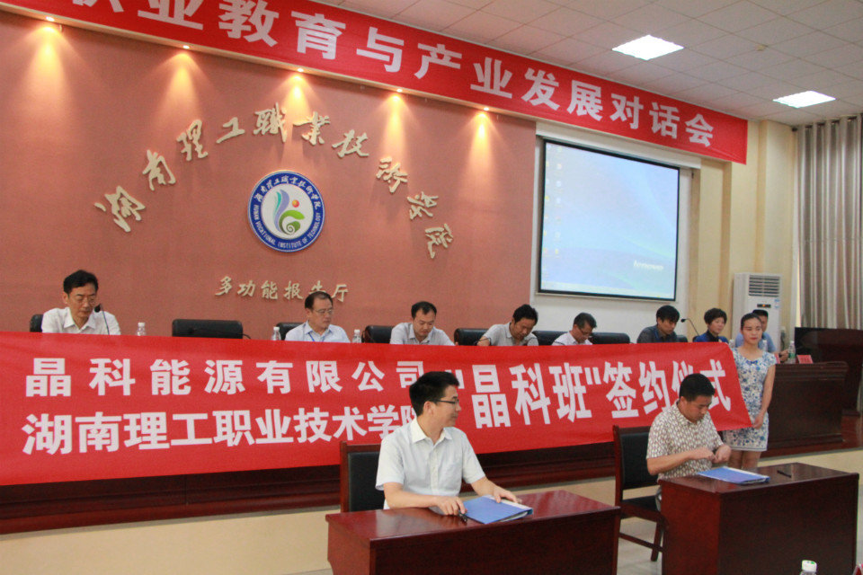 我校多年来一直与晶科能源保持着紧密的合作关系,双方合作建立太阳能光伏专业冠名班“晶科班”,共同探讨人才培养方案,制定人才培养课程,定向培养专业人才,构建校企协同育人体系,特别是在共建就业基地方面发挥了双方优势,达到了“资源共享、人才共育”的目的,为深化校企合作提供了交流平台。