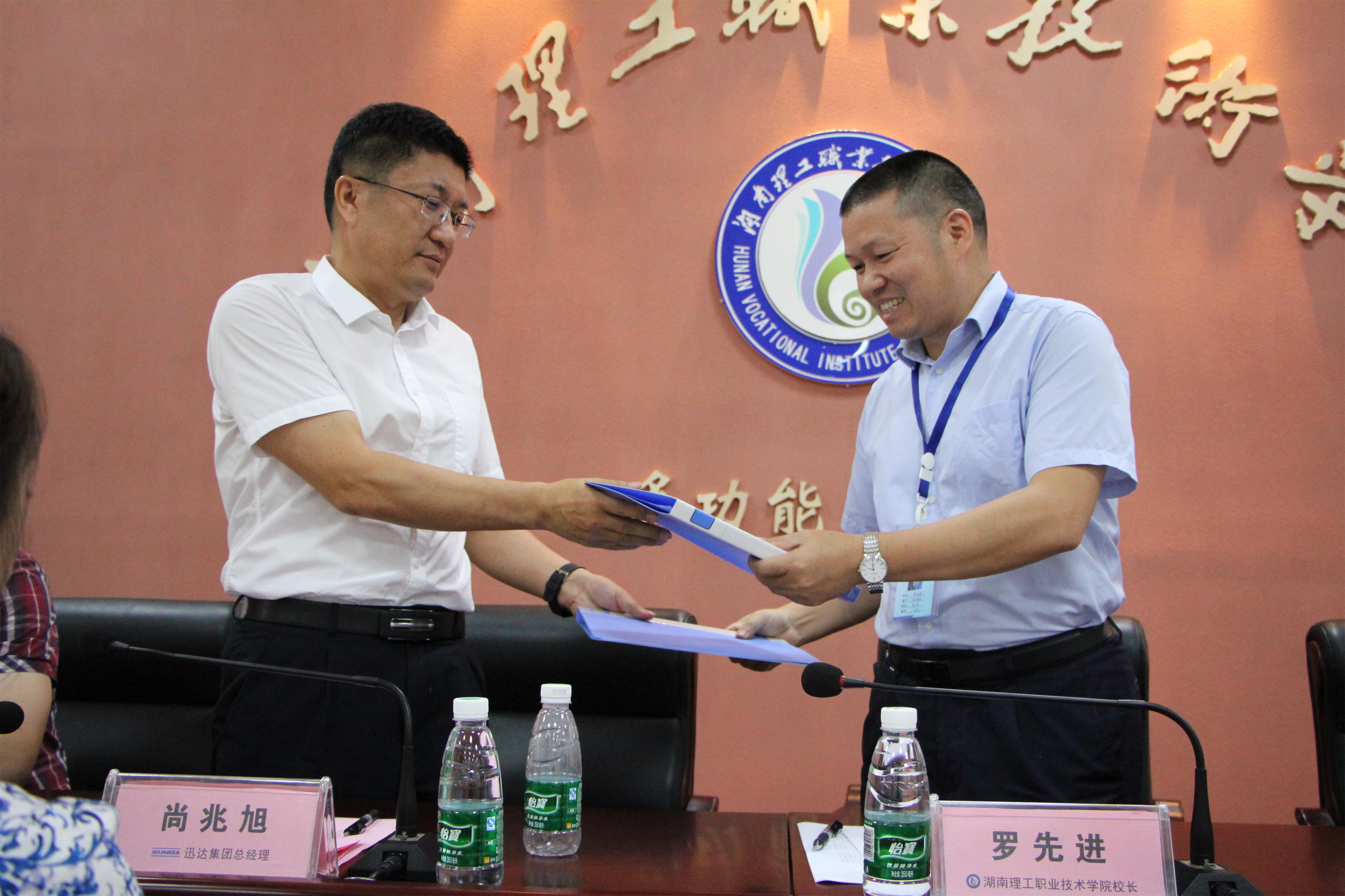 根据协议约定,双方将实施订单式人才联合培养,成立迅达科技集团订单班。充分利用各自优势,按照行业、企业、岗位要求,以现代化模式为主导的专业建设、教学模式、教学管理,实施“产学合一”“做学合一”“车间课堂合一”“老师师傅合一”“校企文化合一”“校企发展合一”的“双主体、六合一”人才培养模式,形成学校学生学历教育培养、企业人员职业技能培训,并对社会提供技术服务的多型深度联合办学体系。