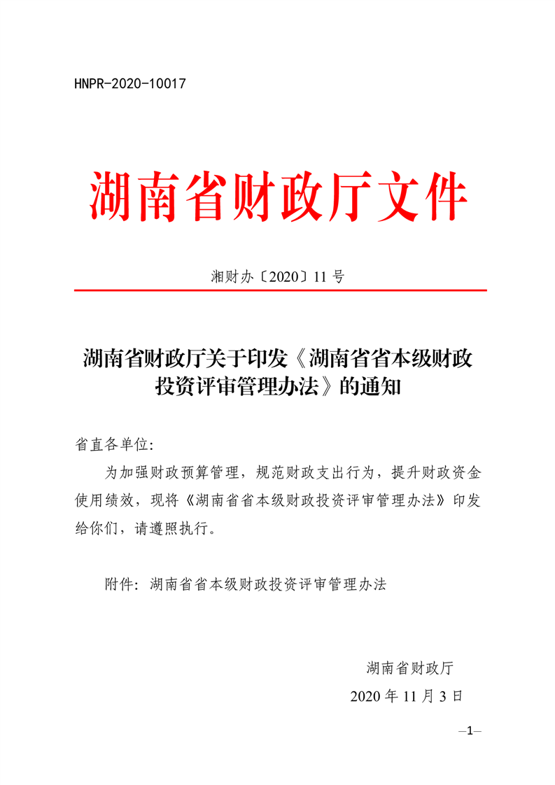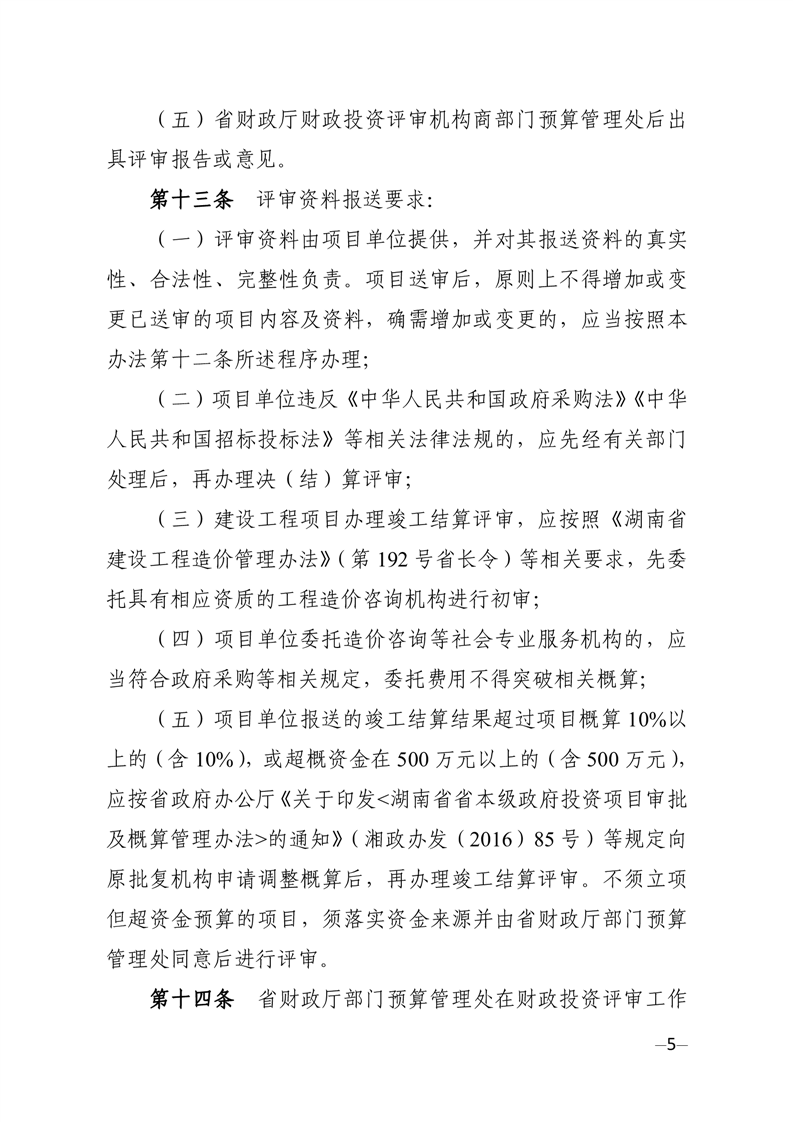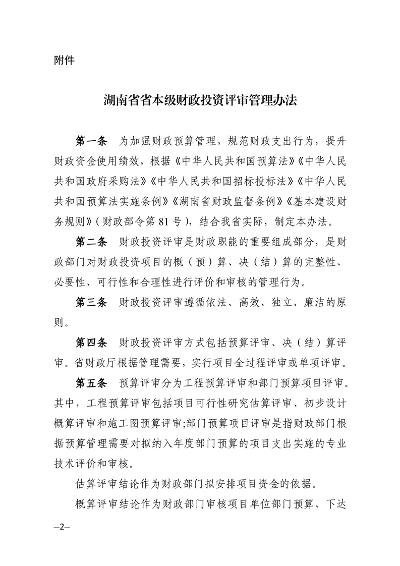 湖南省省本级财政投资评审管理办法
