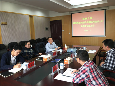 为进一步提高学院党政办成员的工作水平,提升部门的服务能力,加强与院校之间的交流与联系,学习并借鉴兄弟学院的成功做法和先进经验,2016年3月7日下午,党政办负责人朱军带领部门人员赴湘潭大学考察学习。湘潭大学党政办副主任杨澜、副主任谷立平、党委秘书陈金龙热情接待了我院党政办一行。