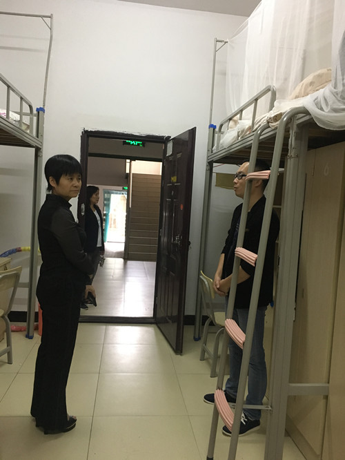 5月21日上午,校长陈静彬深入学生宿舍,开展现场检查工作,党政办主任徐军陪同。