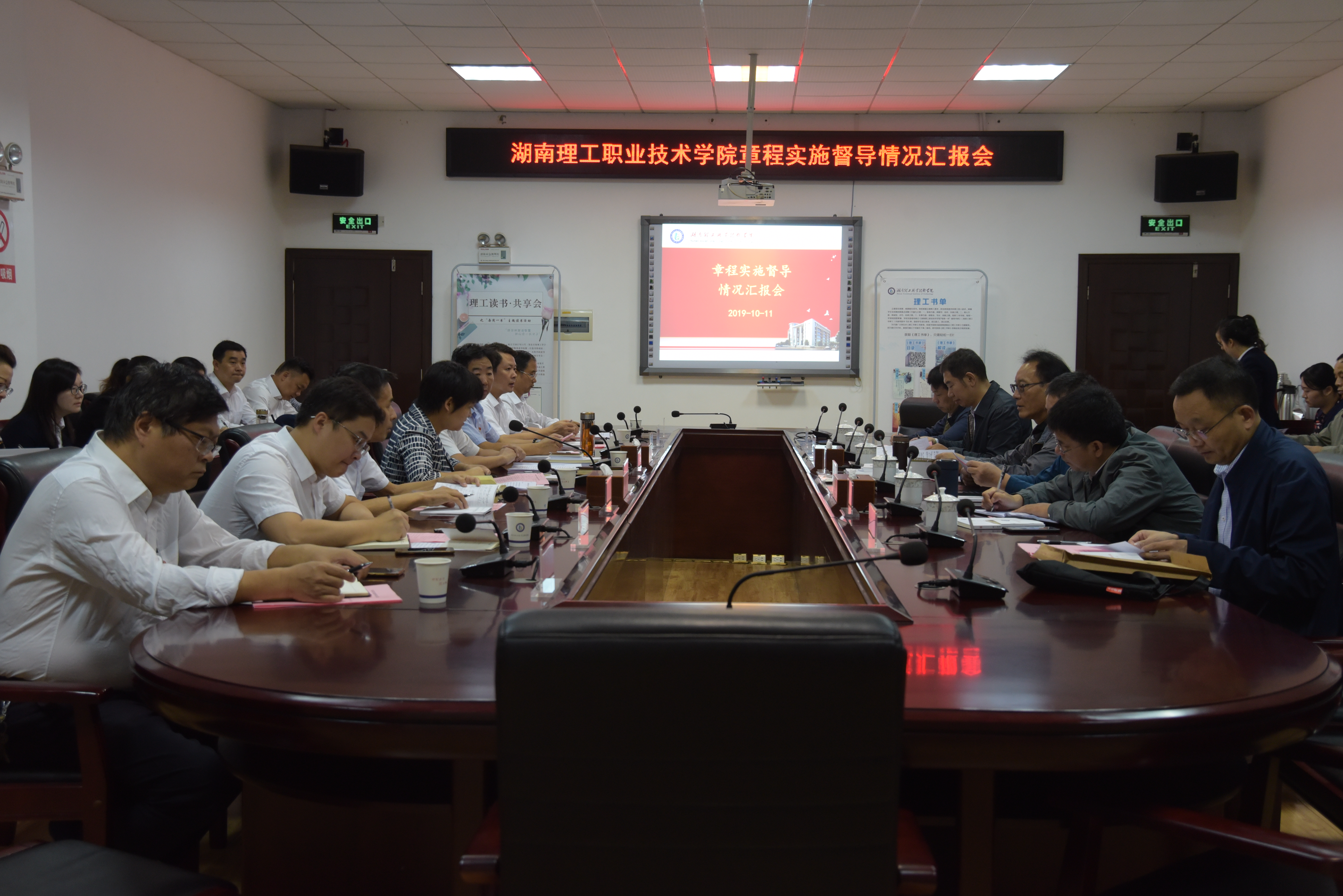 上午8点30分,督导组专家在博学楼一会议室听取了我院章程建设专项督导汇报。全体院领导,各职能部门、二级学院主要负责人参加了会议,会议由党委副书记、院长陈静彬主持。