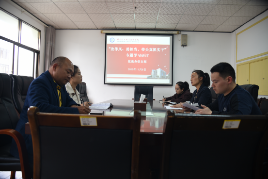 11月6日下午,党政办党支部召开“改作风、勇担当,带头真抓实干”专题学习研讨会。支部书记徐军主持会议,支部全体党员参加。
