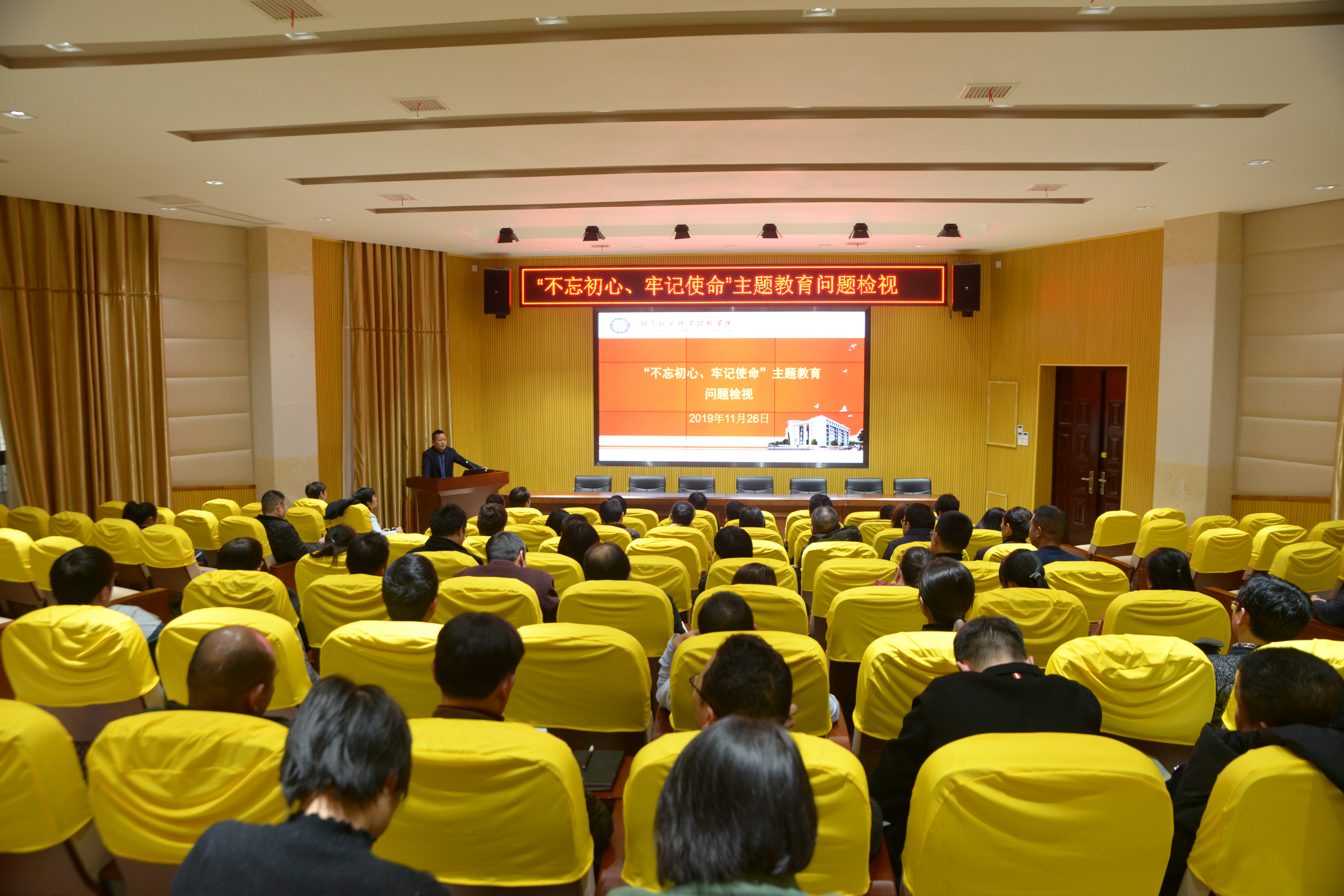 为稳步推进“不忘初心、牢记使命”主题教育,11月26日上午,我院在知行楼报告厅召开了“不忘初心、牢记使命”主题教育问题检视会。党委书记叶星成、院长陈静彬、党委班子成员、各职能部门负责人参加了会议。会议由院长陈静彬主持。