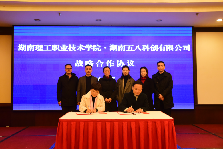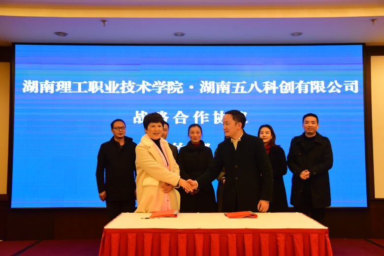 2019年12月19日下午,我院与湖南五八科创有限公司在盘龙山庄举行校企战略合作签约仪式,58众创空间·大学生创新创业服务中心正式落地我院。58科创集团董事长兼CEO吴阔、湖南理工职业技术学院副院长黄霞春等一行出席。