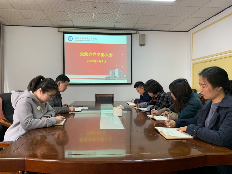 根据中共湖南理工职业技术学院委员关于做好基层党组织换届选举的通知精神,3月1日,党政办党支部在求实楼三楼办公室召开了党员大会,对推荐新一届支部换选候选人作出了具体部署。会议由党政办主任黄永录同志主持,党政办党支部全体党员参加会议。
