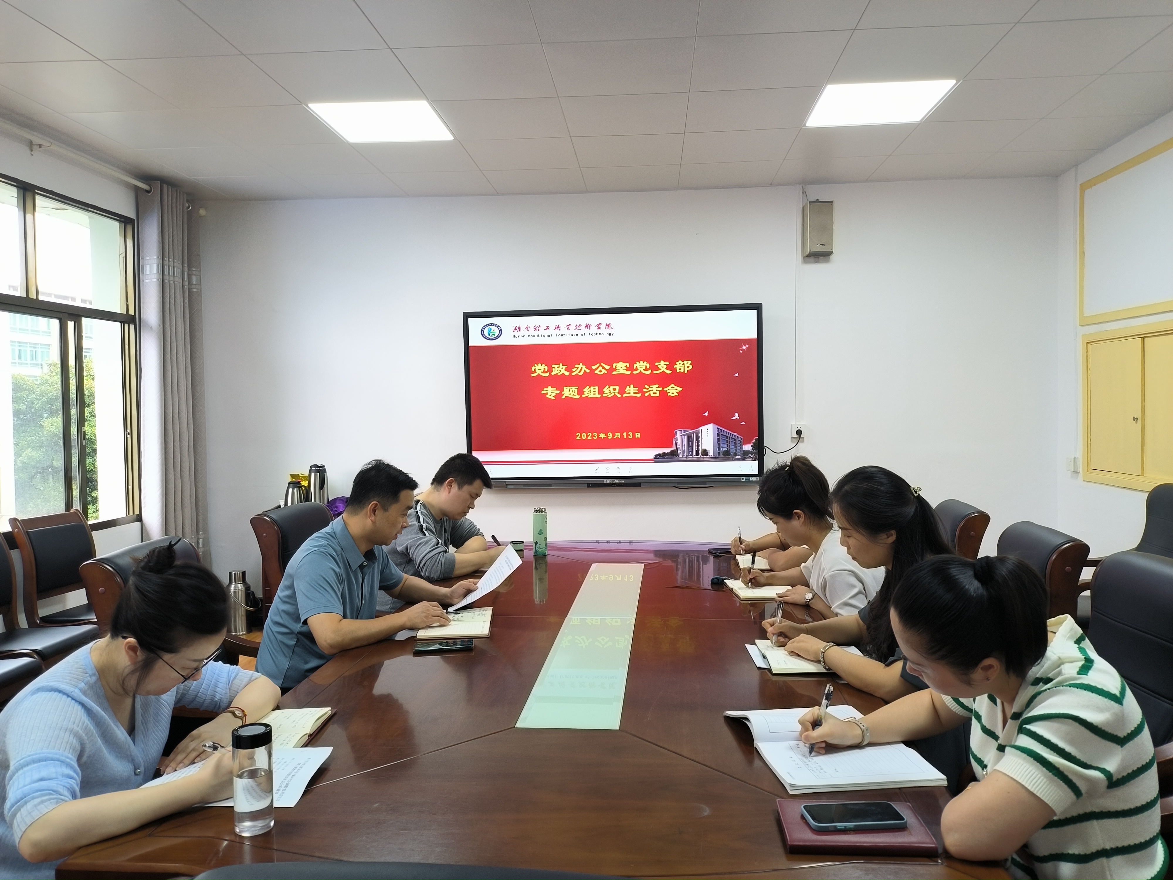 2023年9月13日,党政办党支部在求实楼三楼会议室召开学习贯彻习近平新时代中国特色社会主义思想主题教育专题组织生活会。