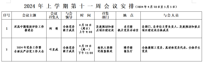 2024年上学期会议安排表(第十一周)