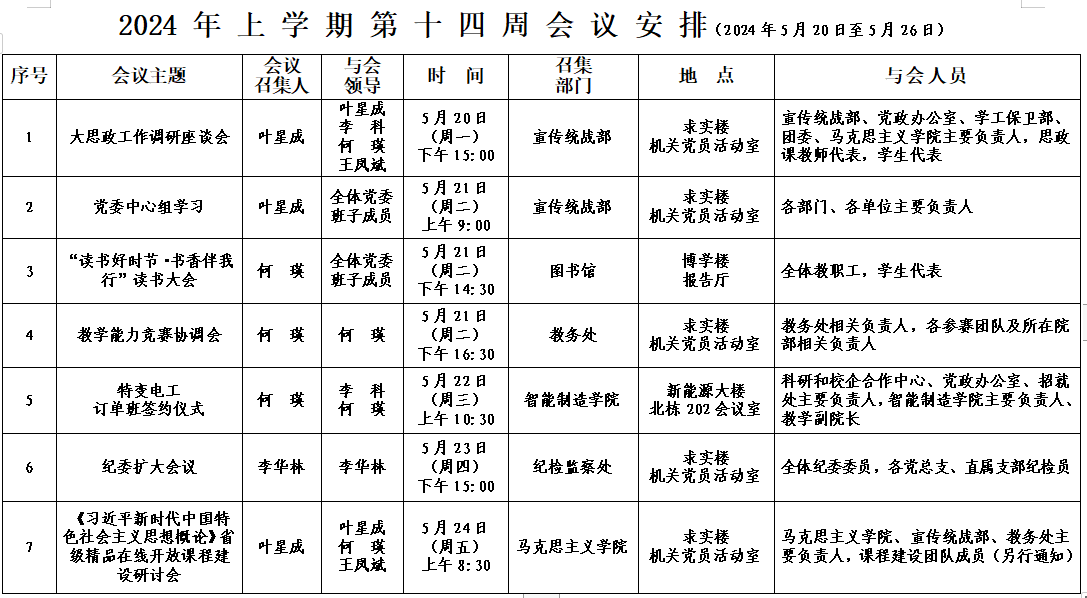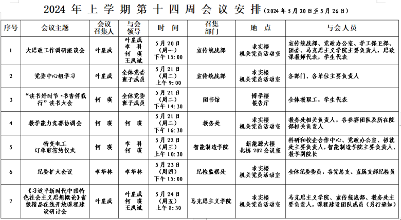 2024年上学期会议安排表(第十四周)