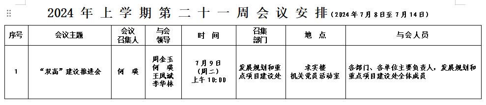 2024年上学期会议安排表(第二十一周)
