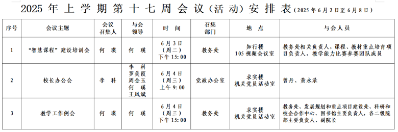 2025年上学期会议安排表(第十七周)
