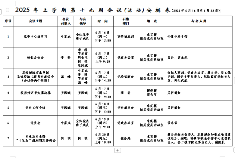 2025年上学期会议安排表(第十九周)
