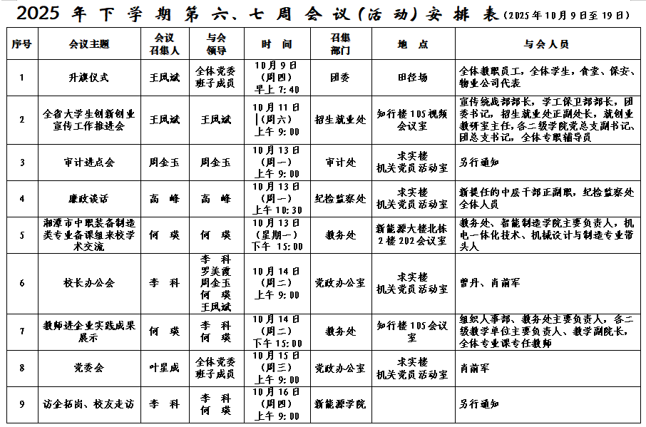 2025年下学期会议安排表(第六、七周)