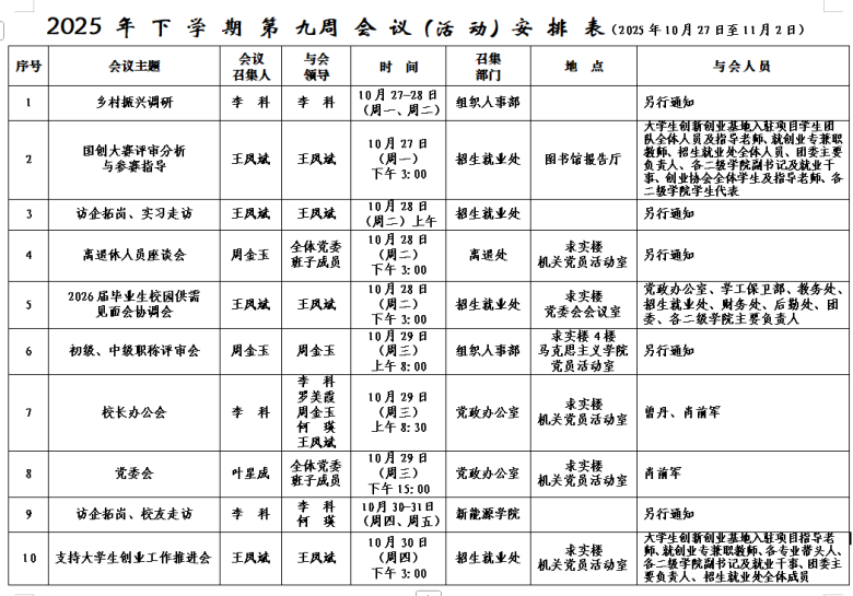 2025年下学期会议安排表(第九周)
