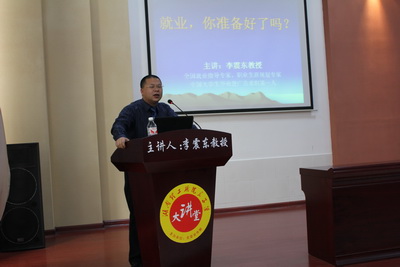 在讲座中,李震东教授围绕“就业形势”、“规划职业”、“就业渠道”、“创新简历”、“完善面试”等问题,结合丰富的数据和大量实例做了详细生动地介绍。李教授的讲座旁征博引,生动风趣,让在座所有师生接受了一场视觉和听觉的盛宴。