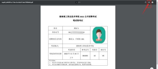 点击下方【笔试准考证的打印PDF】即可进入准考证下载页面,如下图:
