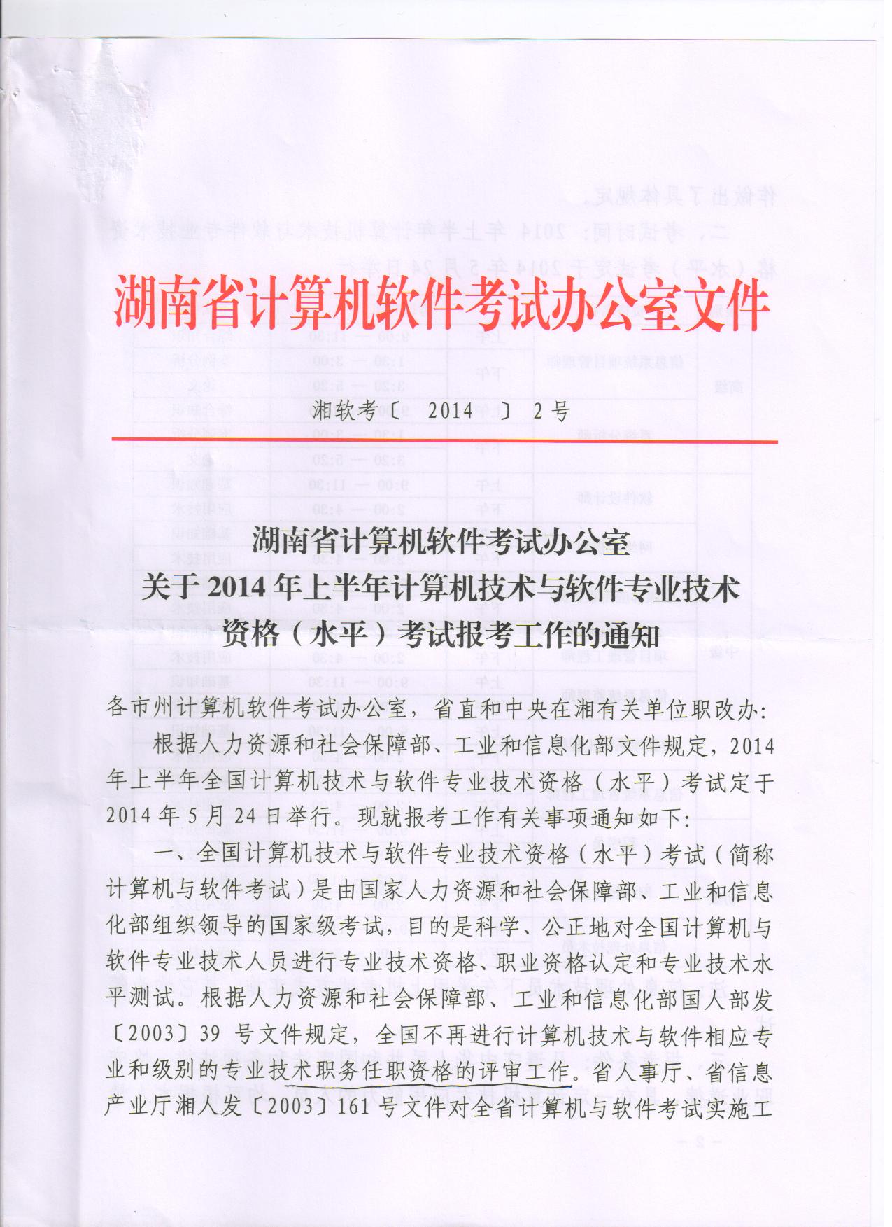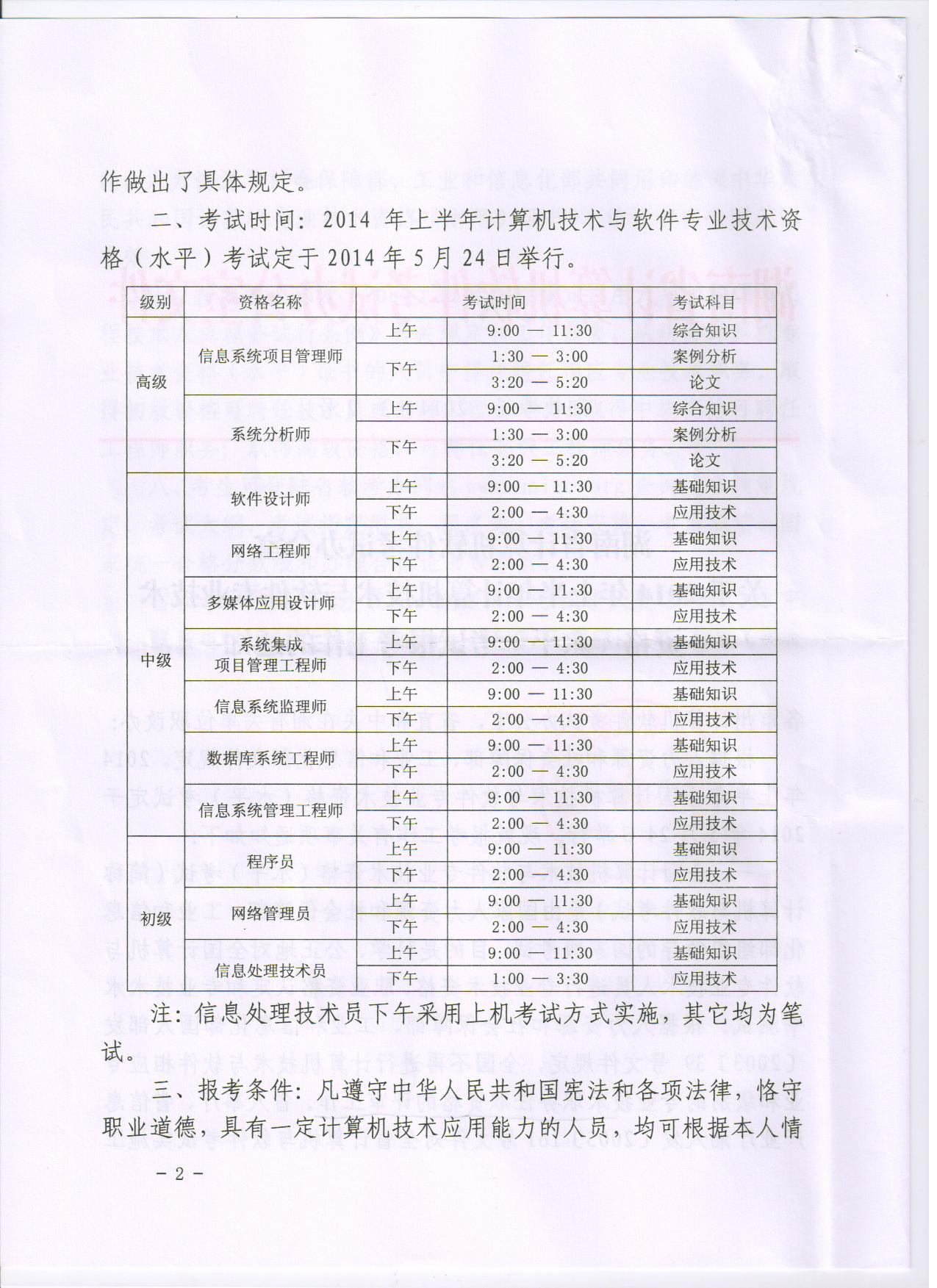 2014年上半年计算机技术与软件考试报考通知