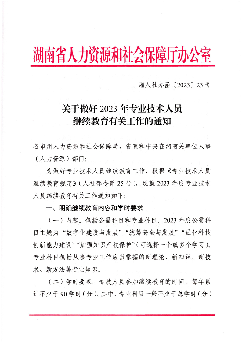 转发 关于做好2023年专业技术人员继续教育有关工作的通知