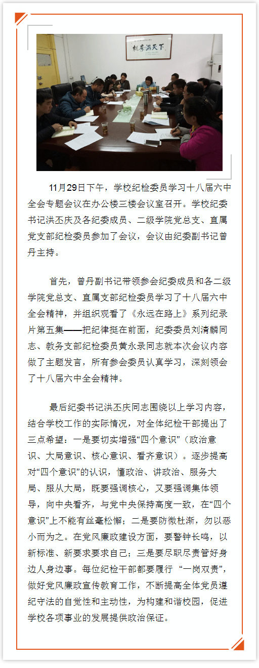 学校召开纪检委员学习十八届六中全会精神专题会议