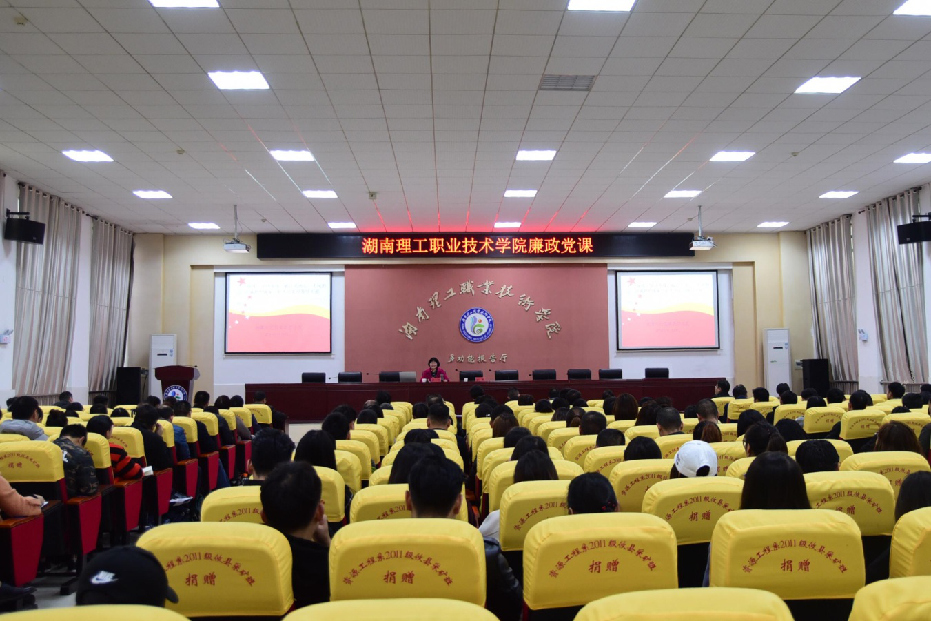 11月13日下午,湘潭市反腐倡廉宣讲团成员湘潭市纪委常委彭小英应邀为我校全体教职工、学生党员作题为《严守底线,坚持高线,做让党放心、人民群众满意的国家公职人员党员领导干部》纪律教育党课专题报告。报告会由纪委书记刘洋主持。