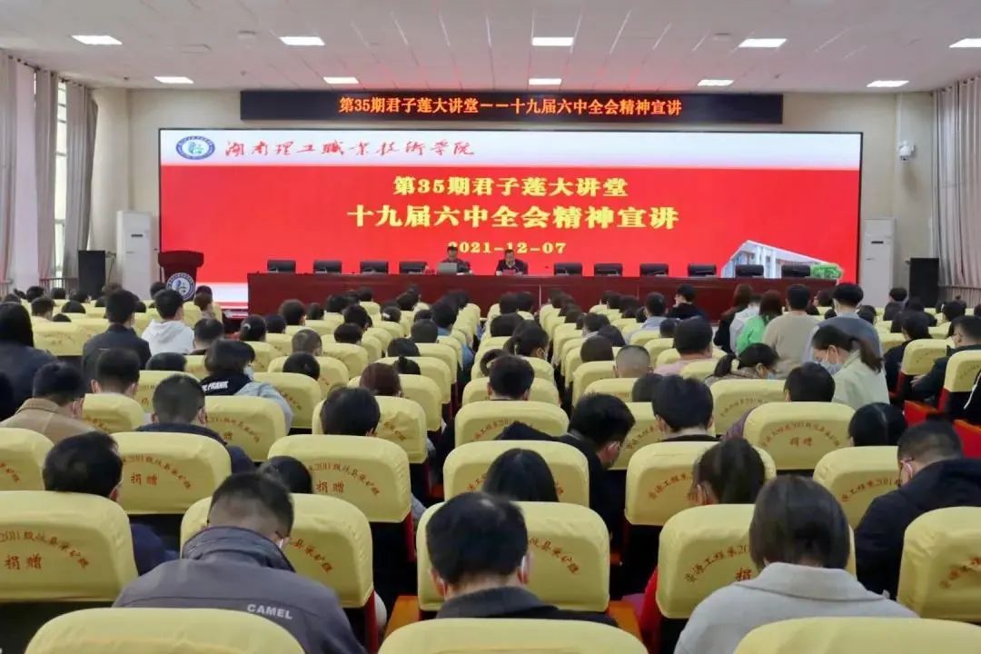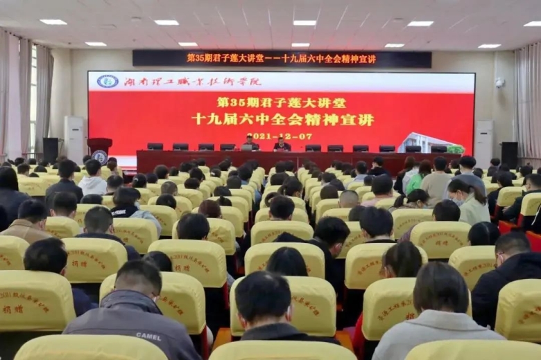 12月7日,党的十九届六中全会精神宣讲报告会暨第三十五期君子莲大讲堂在我院博学楼报告厅开讲。省委改革办二级巡视员唐超雄作题为《以史为鉴 开创未来——深入学习贯彻党的十九届六中全会精神》的专题宣讲报告。院党委书记叶星成作总结,他强调,全院各级党组织要把学习好、宣传好、贯彻好党的十九届六中全会精神作为当前和今后一个时期重要政治任务抓好抓实,切实把学习全会精神转化为立德树人的生动实践,奋力推动学院事业发展再上新台阶,以优异成绩迎接党的二十大召开。