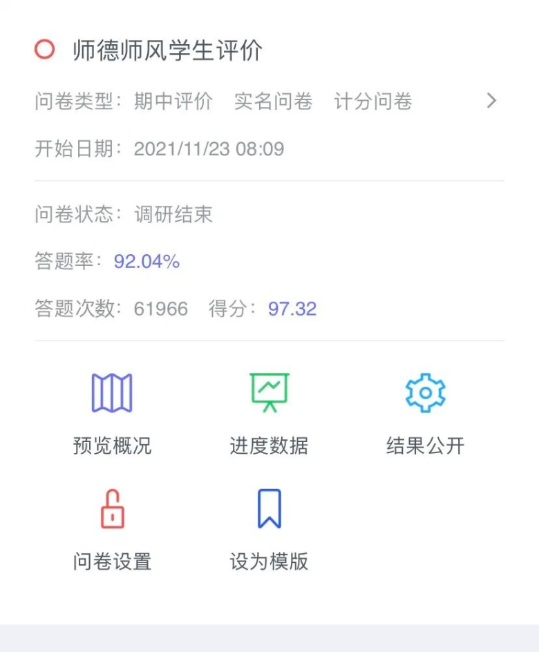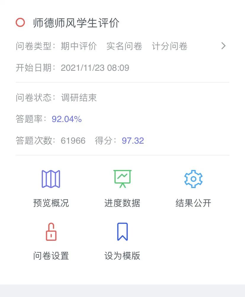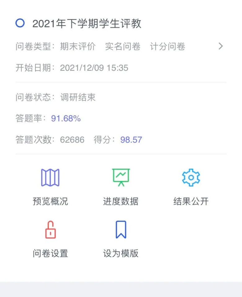 12月份,考核督导办完成了2021年度师德师风建设问卷调查和2021年度下学期学生评教工作,师德师风考核平均分97.32,优秀率为99.7%;学生评教平均分为98.57。考核督导办整理汇总一整年的各项评教数据,为全院教师个人量身打造教学质量评价报告,多角度、多维度地为教师持续提升教学质量提供参考建议。