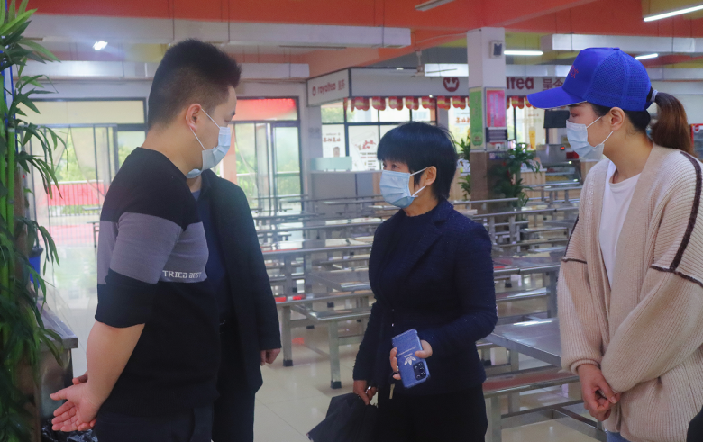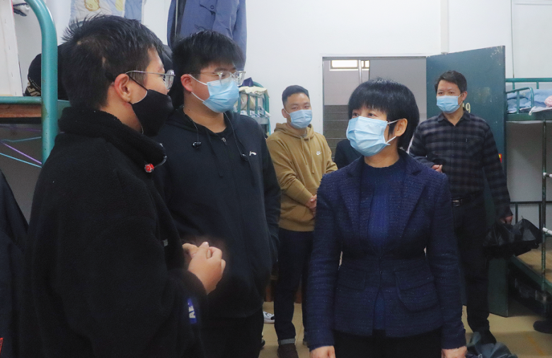 陈静彬一行实地察看了教学楼、实训室、食堂、宿舍等重点场所,对学院封闭式管理期间人员管理、师生就医情况、防疫物资储备情况、食品安全管理情况等进行细致检查。
