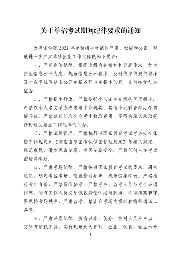 关于单招考试期间纪律要求的通知