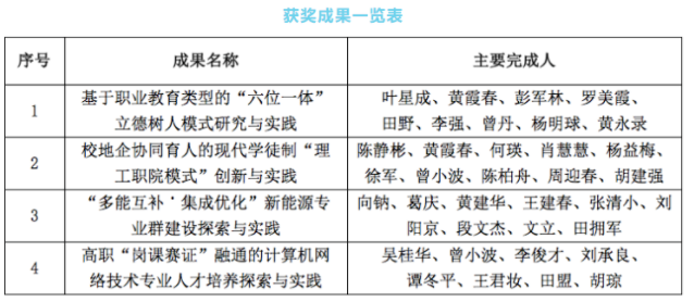 6月,学院教育教学(成果)在省级教学奖项中取得的历史性突破。湖南省教育厅印发《关于公布2021年湖南省职业教育省级教学成果奖获奖成果的通知》公布的结果中,学院共获得4项成果奖,其中二等奖2项,三等奖2项。湖南省职业教育省级教学成果奖是省内职业教育教学研究与改革的最高级别奖项,每四年评选一次,代表职业教育教学改革理论创新和实践探索的新成果。