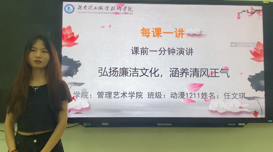6月,学院组织了“弘扬廉洁文化,涵养清风正气”廉洁主题的课前一分钟演讲活动。党风清明、作风清廉、教风清正、学风清新、文化清朗“五大工程”是建设清廉学校的重要举措。学院将结合各类教育教学活动,使清廉理念在学生中入脑、入心、入行,使廉洁、诚信、勤俭、守法等道德观念成为学生普遍接受的行为准则,进一步树立学生正确的世界观、人生观和价值观,培养学生廉洁奉公、诚信守法的意识,构建敬廉崇洁、廉洁从教、廉洁从政的校园环境,让清正廉洁之风吹遍校园的每一个角落。