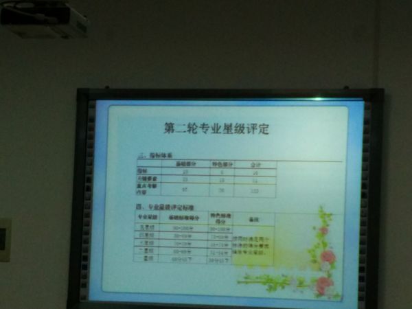 教务处副处长张访问就专业星级评定标准修订、审查时间、材料准备以及结果公示等问题及完成时间作了详细的解读。与会人员就星级评定的标准内容、特色材料、服务湖南经济发展及相关佐证材料的准备等100个得分小点展开了激烈的讨论并提出了合理的建议。大家一致认同,专业星级评定能督促学校教师队伍成长、鞭策教师教学水平的提高,最终达到提高人才培养水平的目的。