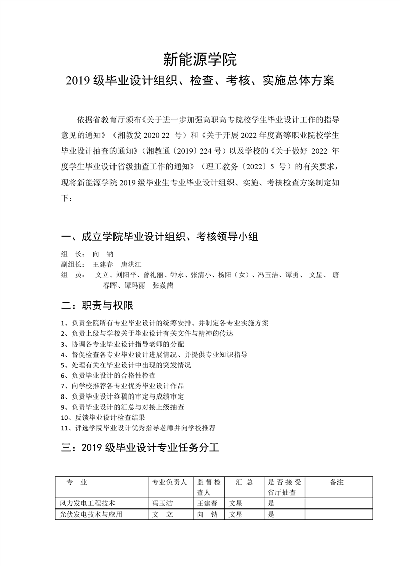 新能源学院2019级毕业设计组织、检查、考核、实施总体方案