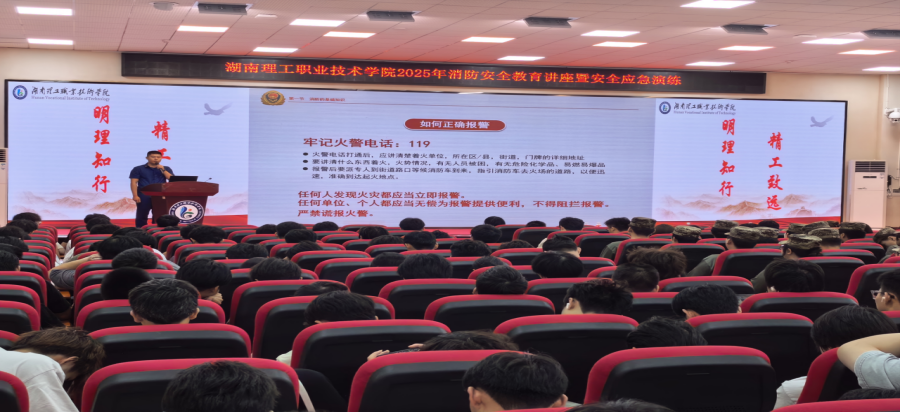 活动以校园消防安全警示片开场,通过真实案例展现火灾危害,敲响安全警钟。随后,湘潭市岳塘区消防救援大队宣解员张桁溯围绕消防基础、器材使用、校园隐患及逃生知识展开深度讲解。他重点剖析了学生公寓违规使用大功率电器、寝室卧床吸烟及乱扔烟头、私拉乱接插座板串联(超负荷用电) 三大高频隐患。在消防器材使用环节,张桁溯详细介绍了手提式灭火器的 “一提二拔三握四压” 操作要点,特别指出压力表红、绿、黄三区的含义,并提醒 “干粉灭火器使用时不可颠倒或横卧”。