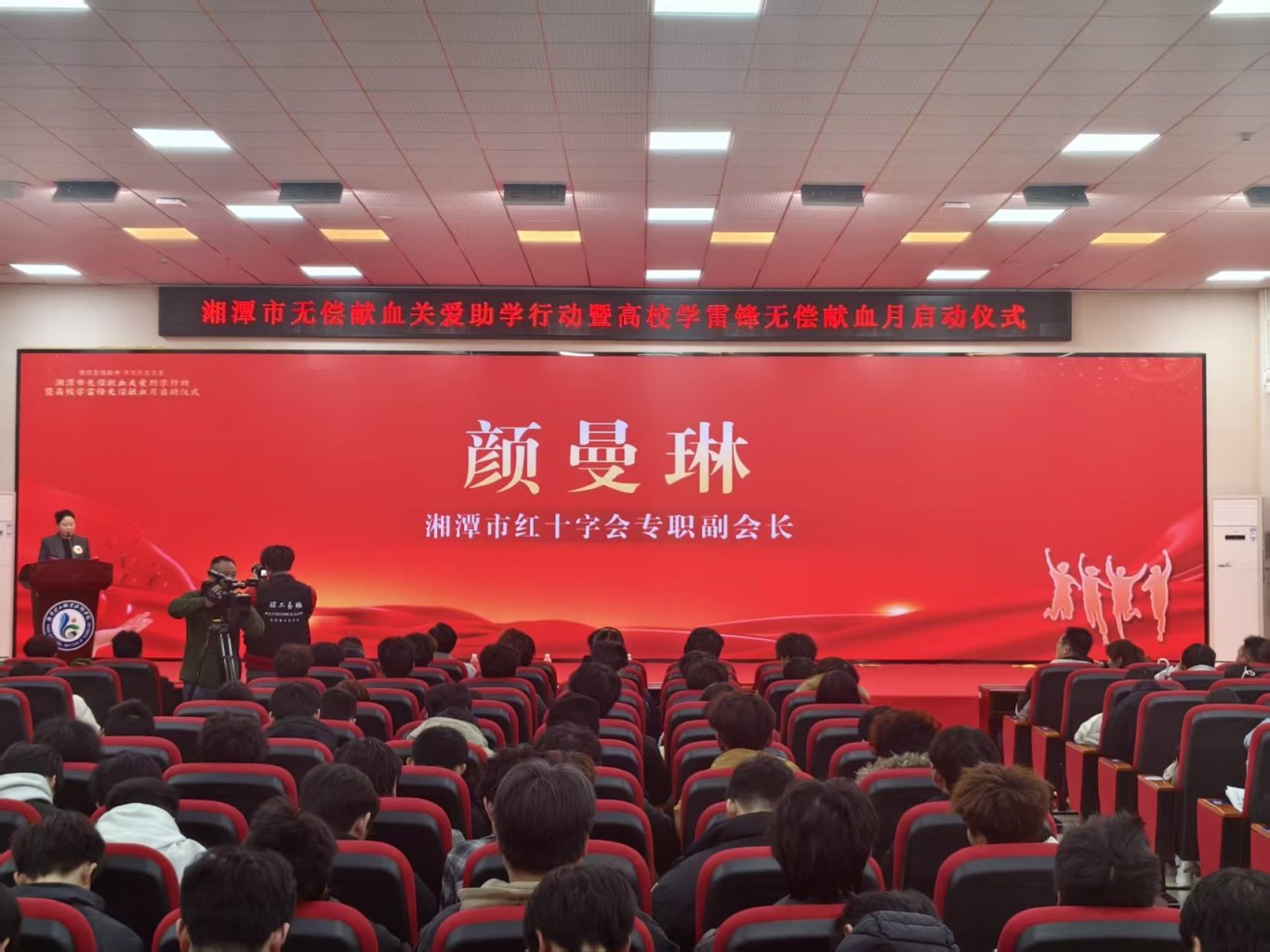 活动现场温暖庄重、氛围浓厚。湘潭市红十字会专职副会长颜曼玲宣读无偿献血倡议书,她以真挚恳切的话语,深刻阐释了无偿献血对于挽救生命、传递大爱、弘扬美德的重要意义,呼吁广大师生以举手之劳践行公益初心,以点滴热血传递人间温情,号召新时代青年主动扛起社会责任,以实际行动践行雷锋精神、彰显青春担当。