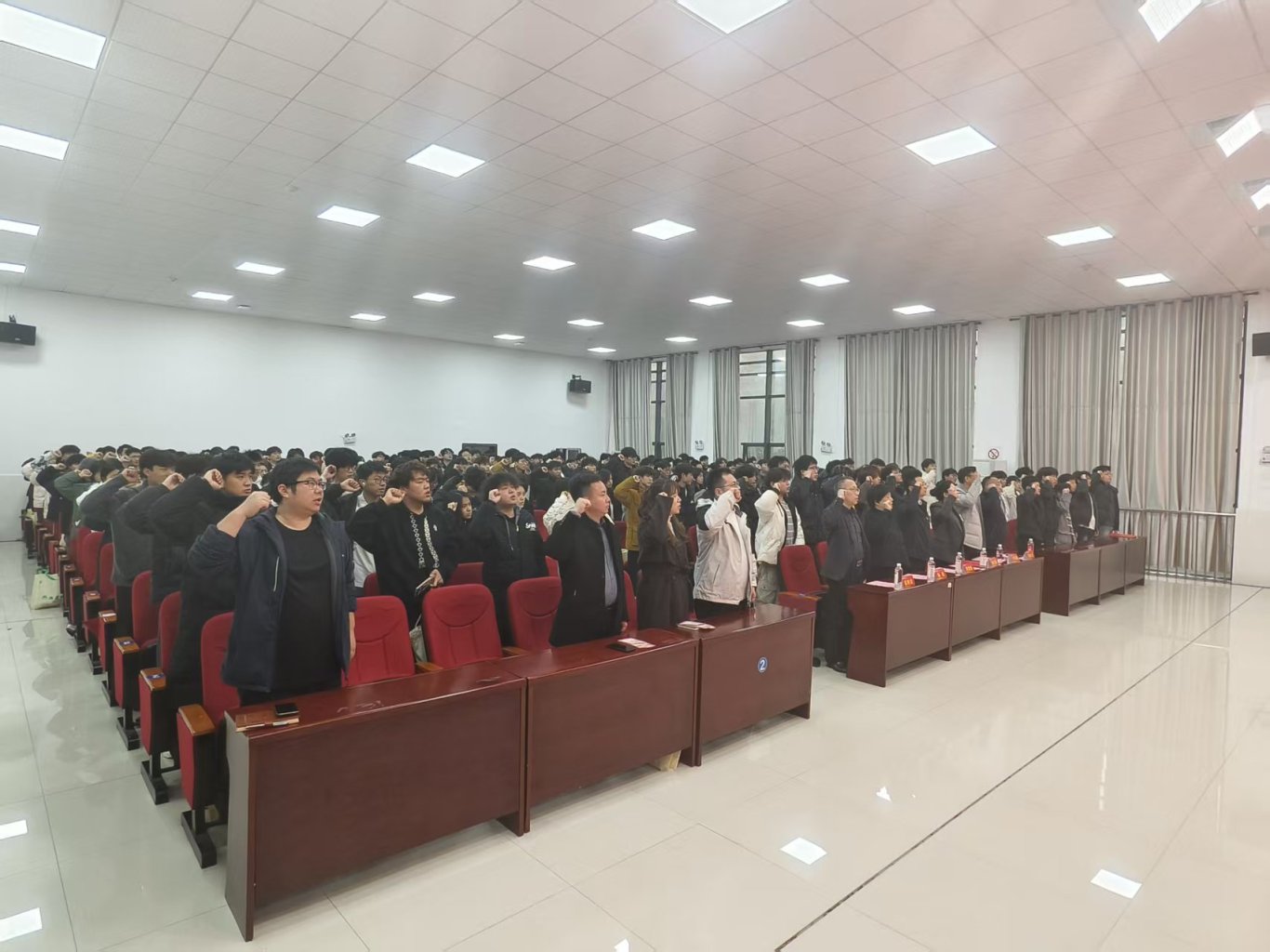 随后,志愿者代表杨乐健同学铿锵领誓,全体参会人员庄严起立、举起右拳,齐声宣誓。“坚守奉献初心,践行雷锋精神”的铮铮誓言响彻校园、久久回荡,字字铿锵、句句有力,生动展现出学校青年学子胸怀大爱、勇于担当、向善而行、乐于奉献的良好精神风貌,彰显了新时代青年的责任与使命。