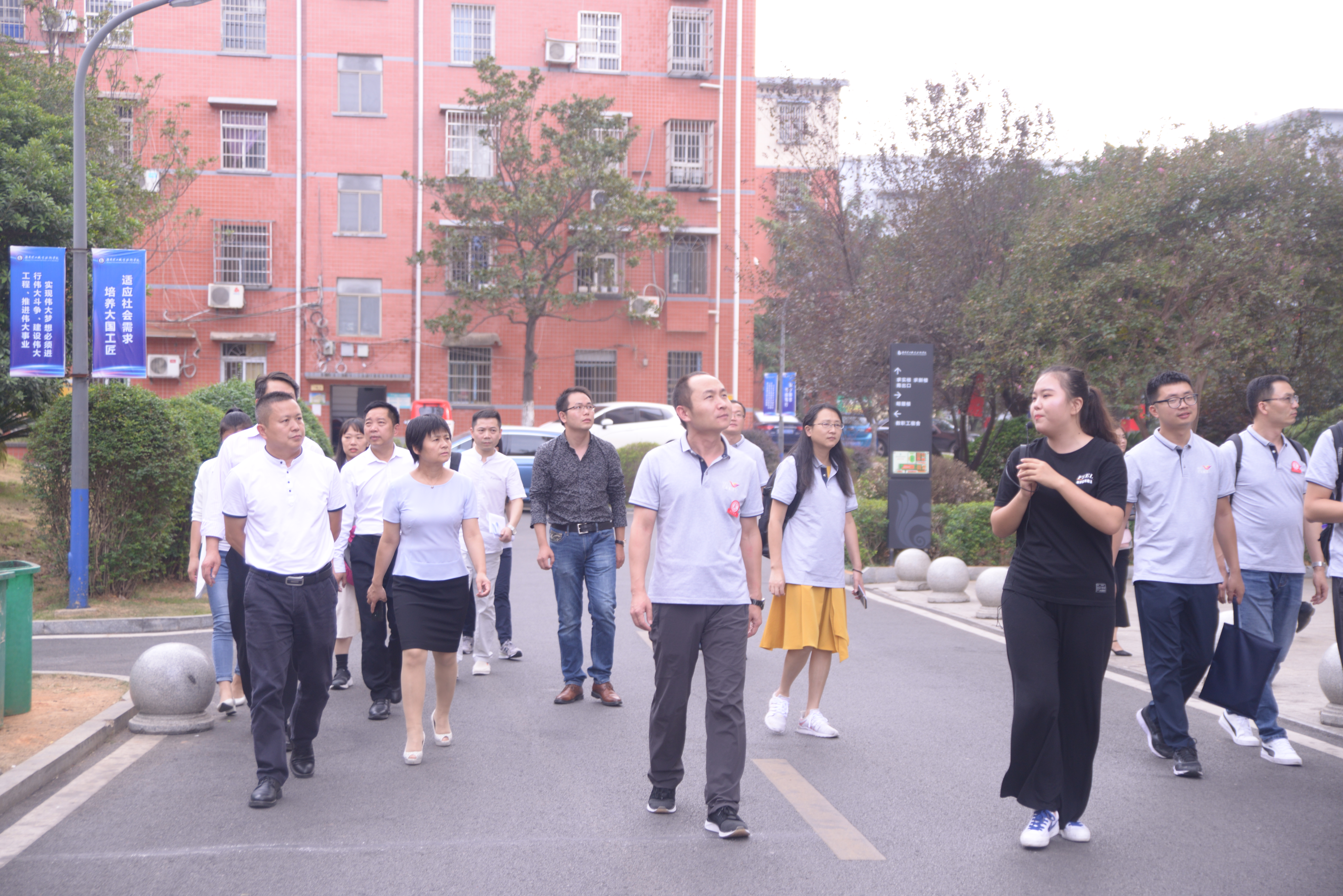 调研团首先参观了校园,学院党委书记叶星成、院长陈静彬、副院长周金玉陪同介绍了学校的三全育人工作与校园文化景观。