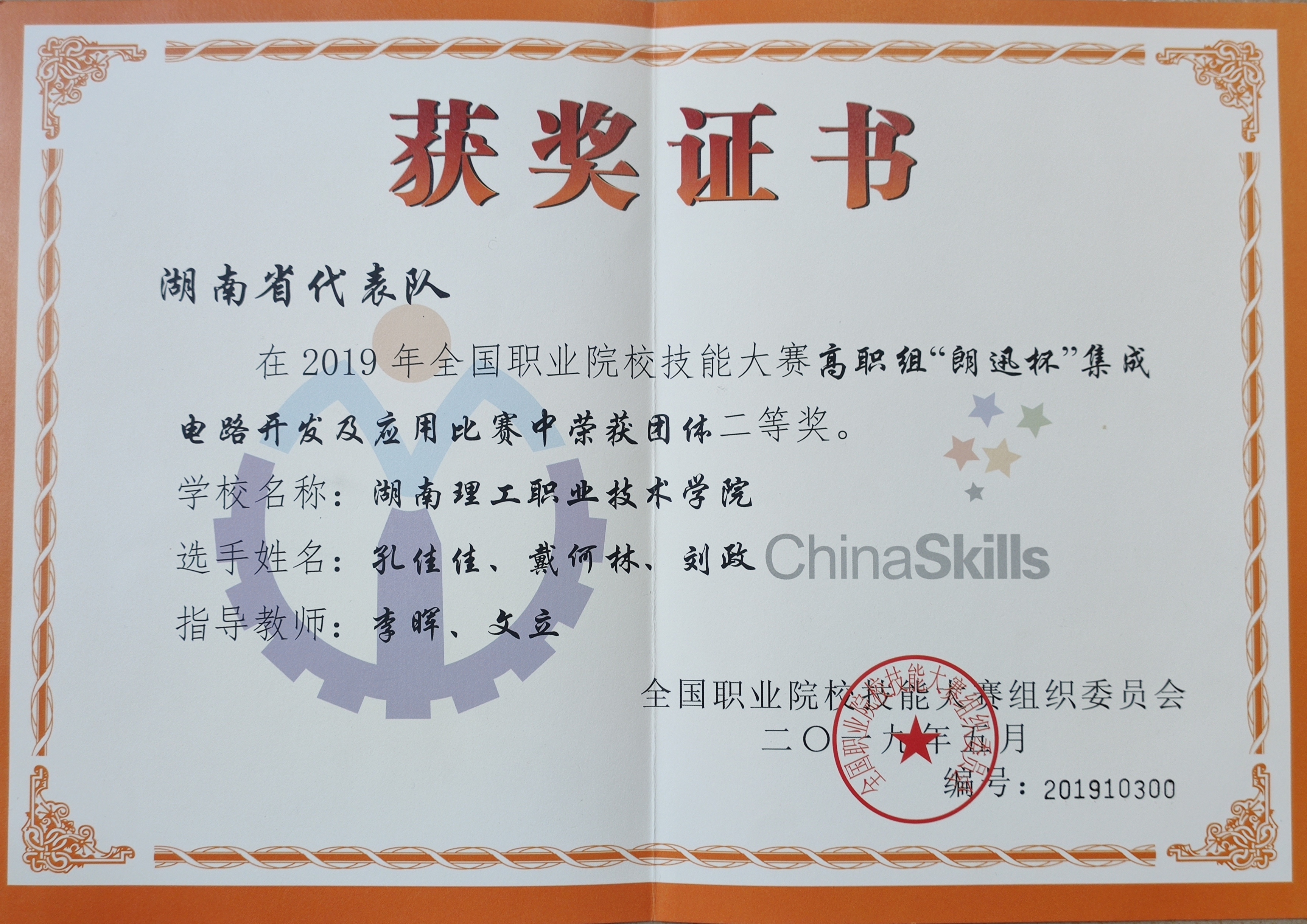 在校学习期间,曾荣获2019年全国“集成电路开发及应用”技能竞赛二等奖、2019年湖南省“集成电路开发及应用”技能竞赛一等奖、2018年学院“电子AD绘图”技能竞赛二等奖、2018年学院“电子产品设计与制作”技能竞赛二等奖,2018年学院“电工电子技能”技能竞赛二等奖,学院综合奖学金及优秀团员、三好学生称号。