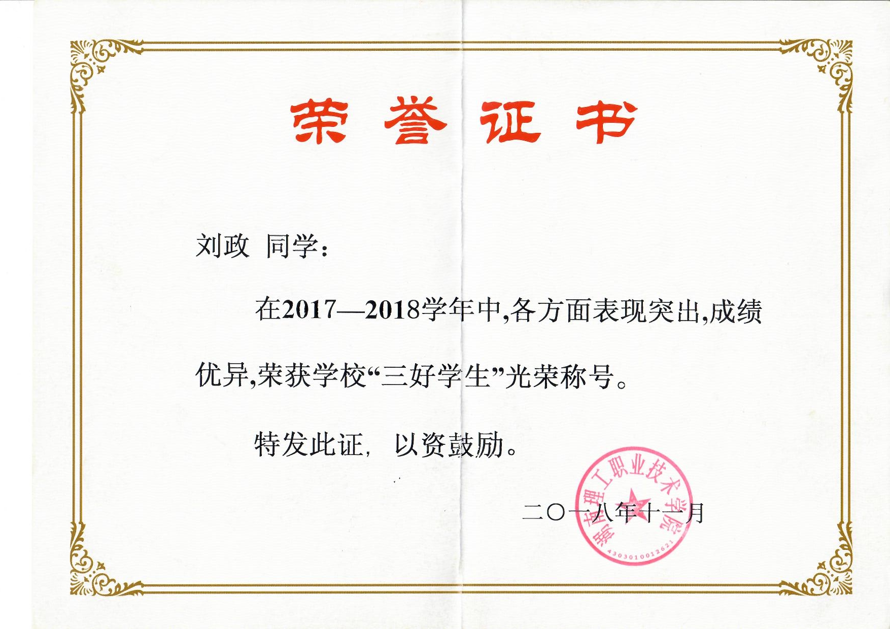 刘政,男,汉族,中共预备党员,新能源学院光伏发电技术与应用专业2017级学生。该生在校学习期间,遵纪守法、尊敬师长、团结同学、朴实诚信、成绩优异,综合及专业成绩连续两年名列专业第一。