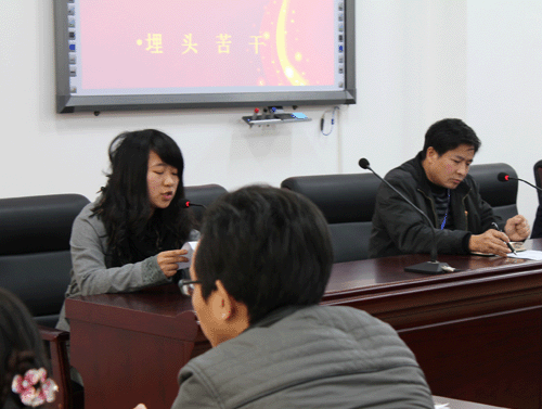 然后,党政办公室葛鸿雁、教务处副处长葛庆、学生工作处唐永兴、后勤处蒋金龙等四位同志,分别代表本部门在会上发言。表示一定会加强学习、明确责任、爱岗敬业,当好学院的主人,做好师生的仆人。为推动我院办公文明建设、创建省级文明高校、构建和谐校园当好排头兵。