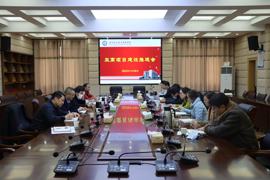 11月30日上午,我校在求实楼三楼机关党员活动室组织召开“双高”项目建设推进会。校长李科、党委副书记朱奇卫、副校长黄霞春、副校长周金玉、一级建设项目总负责人及专业群负责人出席会议。会议由校长李科主持。