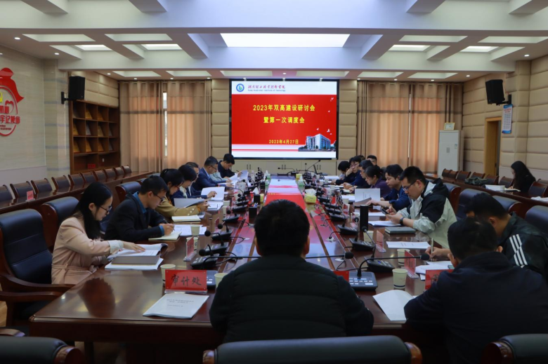 4月27日下午,我校在求实楼三楼党员机关活动室组织召开2023年“双高”建设研讨会暨第一次调度会。校长李科,副校长周金玉、何瑛、王凤斌,纪委书记李华林,各部门负责人出席会议。会议由校长李科主持。