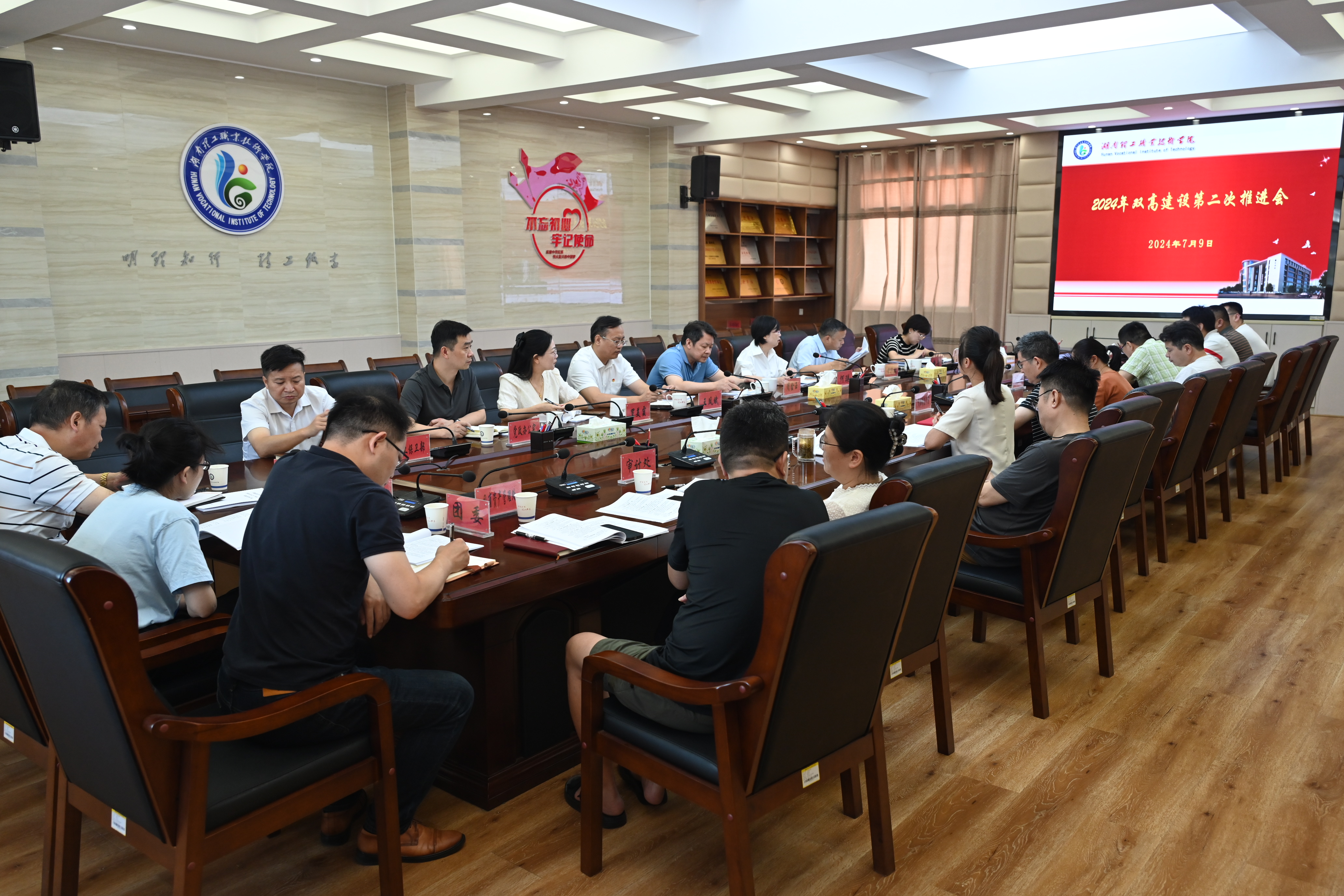 为总结2024年上半年“双高”建设开展情况,保障项目建设进度及质量,部署推进暑期工作,7月9日,学校在求实楼三楼党员机关活动室组织召开2024年“双高”建设推进会。副校长周金玉、何瑛、王凤斌,纪委书记李华林及各部门负责人、发展规划和重点项目建设处全体人员参加会议。